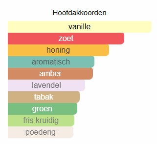 Zoet , gourmand, romig, kruidig, poederachtig.